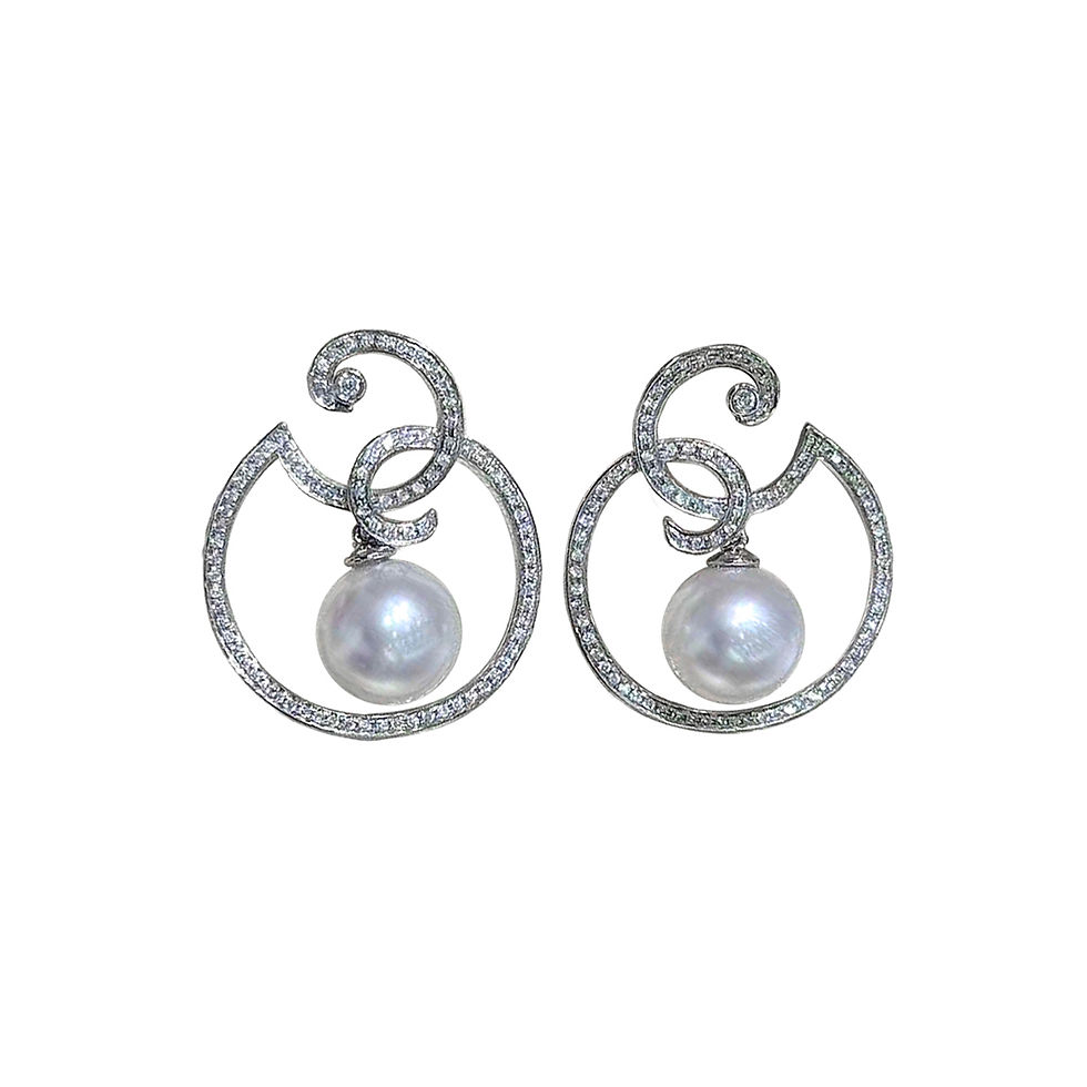 Caelmare — Turquoise Wave 12–13mm South Sea Pearl Diamond Earrings