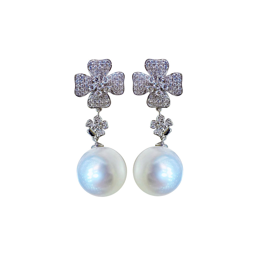 Vine Symphony — Diamond Blossom AAAA South Sea Pearl Drop Earrings