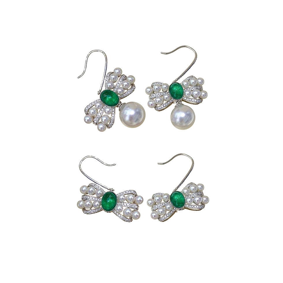 Vine Symphony — Convertible Emerald Bow Diamond Aurora South Sea Pearl Earrings