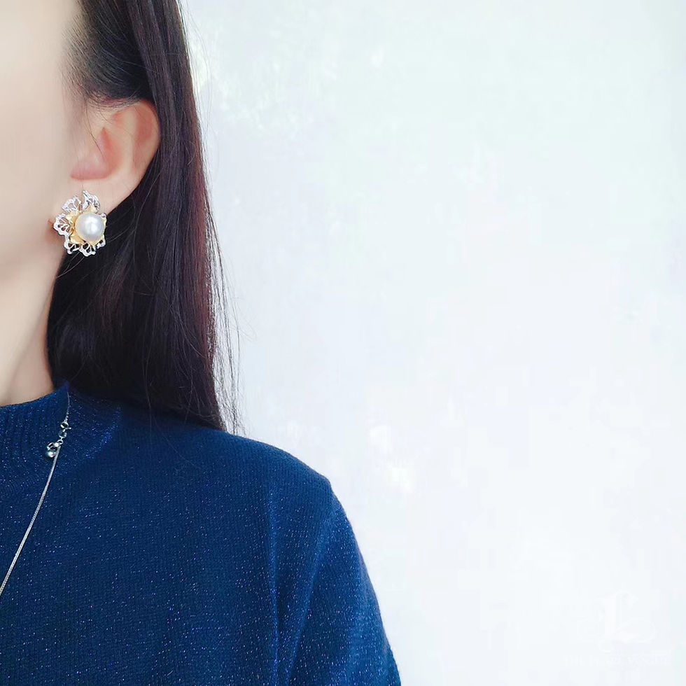 Vine Symphony — AAAA 11–12mm South Sea Pearl Diamond Floral Earrings