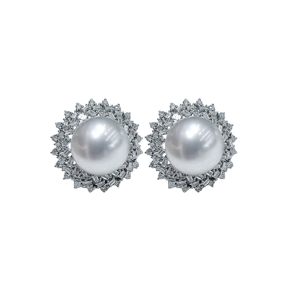 Crown Radiance — Diamond Blossom Aurora South Sea Pearl Earrings