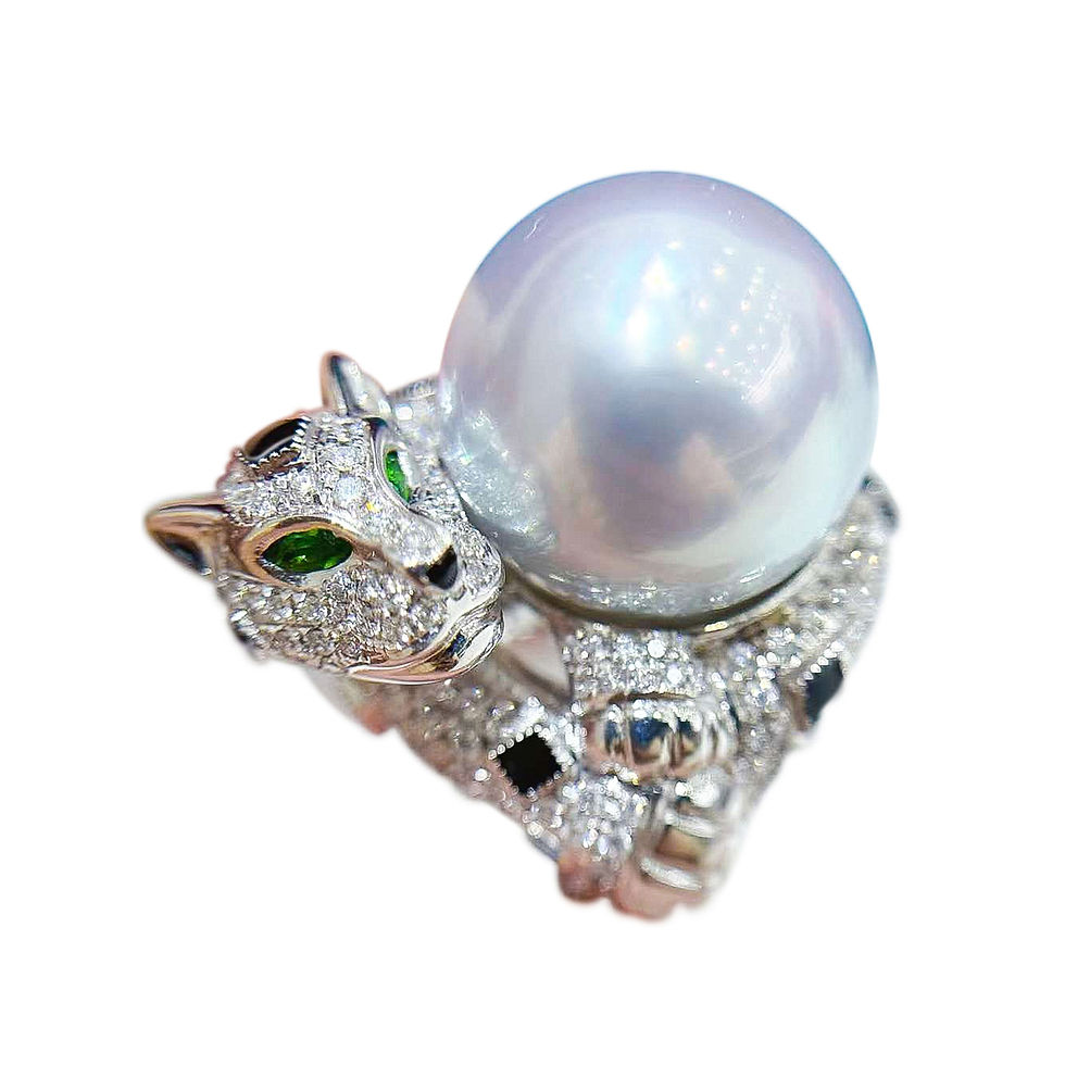 Crown Radiance — Panther South Sea Pearl Diamond Ring