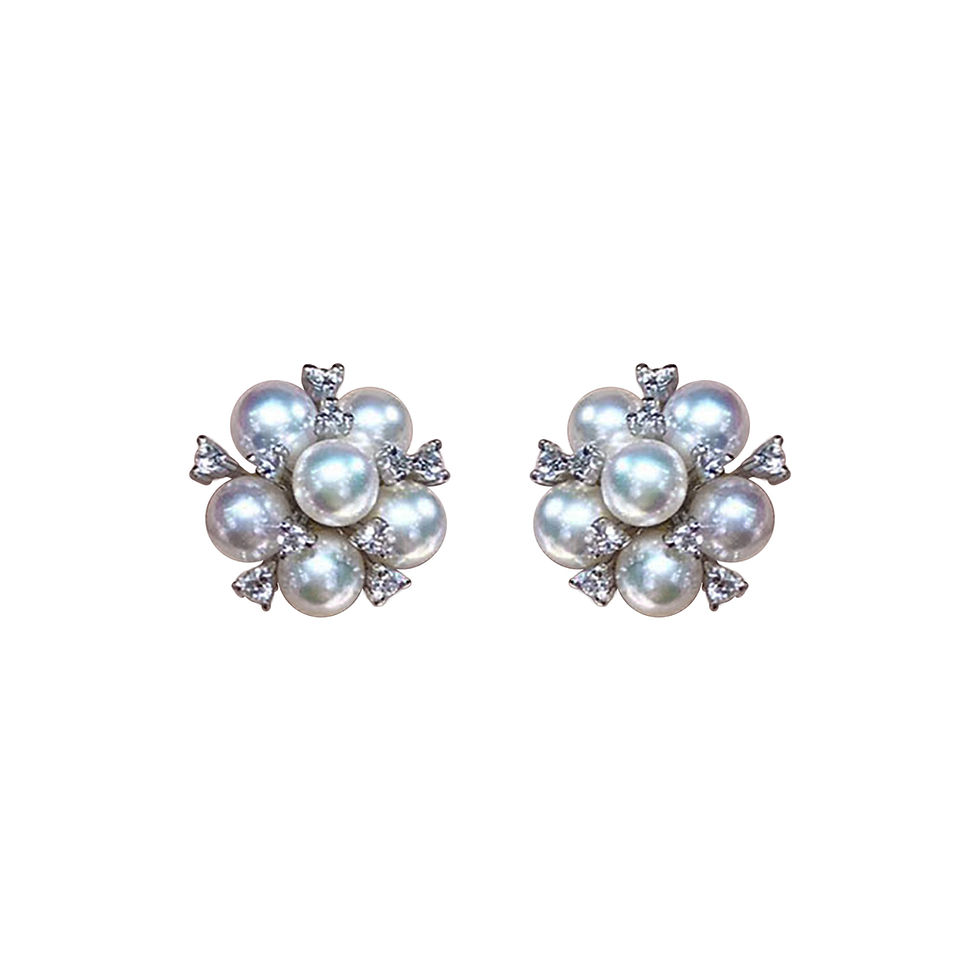 Crown Radiance — Baby Akoya Pearl Diamond Floral Stud Earrings