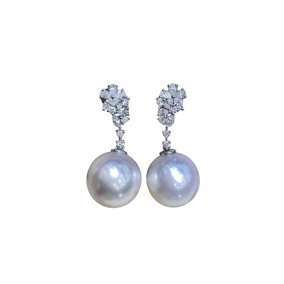 Vine Symphony — AAAA 11–12mm South Sea Pearl Diamond Earrings